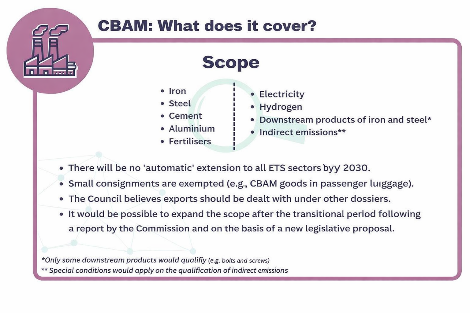 此前 CBAM 仅覆盖 钢铁、铝、水泥、化肥、氢气、电力 六大原材料行业。