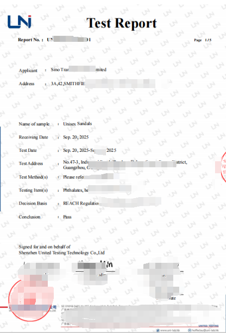 拖鞋在欧盟境内销售时,不得标签信息缺失、语言不合规。我们在这票柜中,专门指导客户对每个 SKU 的标签进行核对,确保必要信息齐全,且能与检测/发票/装箱单对应。建议标签至少包含:
